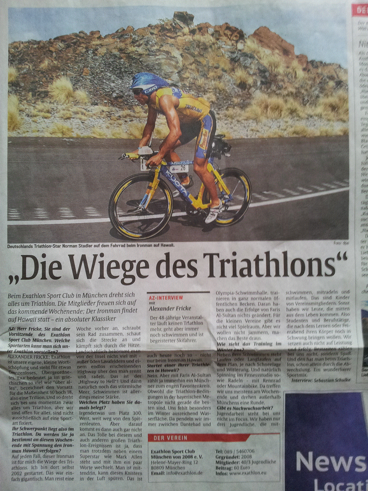 Punktlich zum Ironman Hawaii erscheint ein schöner Artikel über uns in der Abendzeitung
